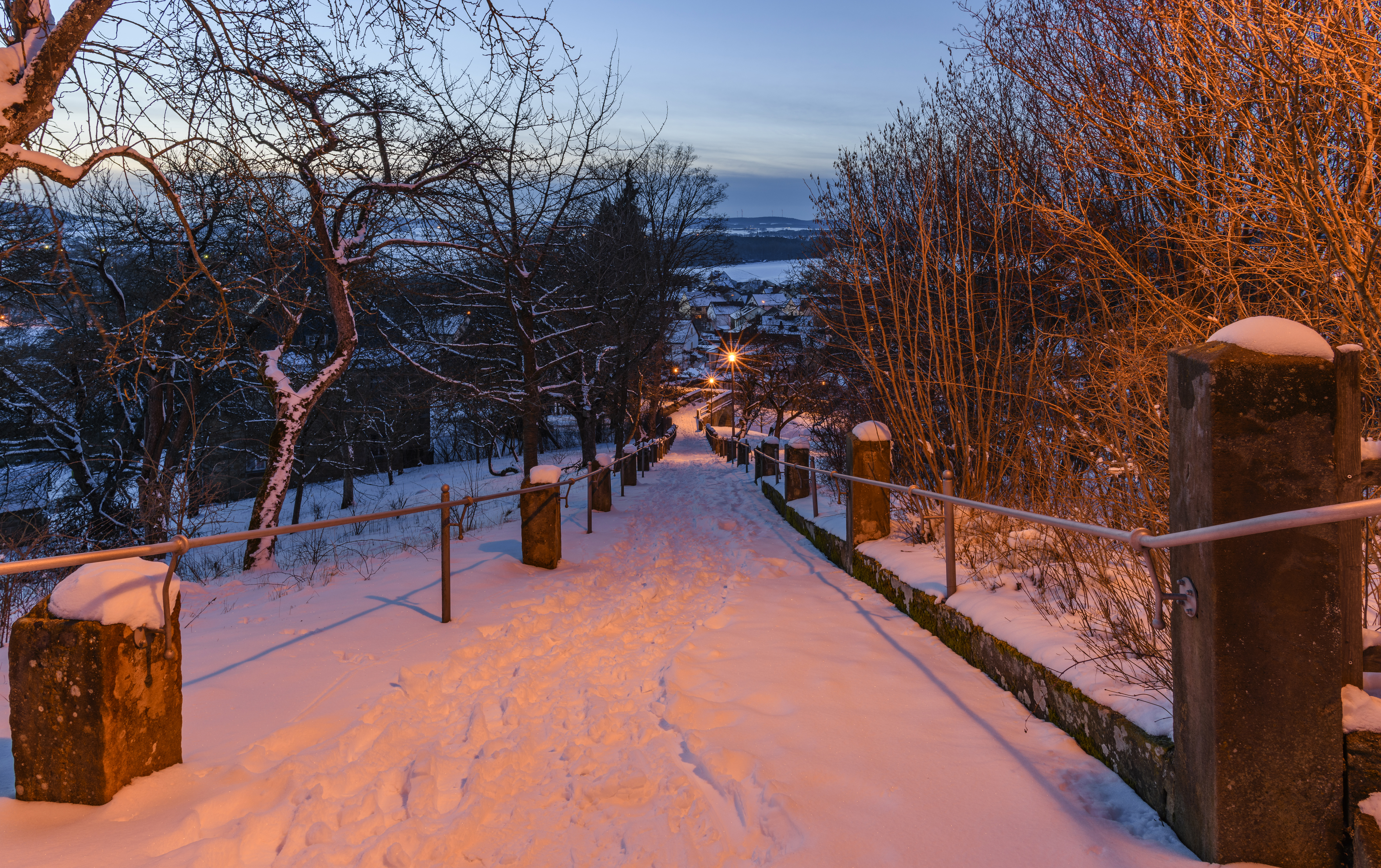 Wallpaper Snowy track on a slope in the evening