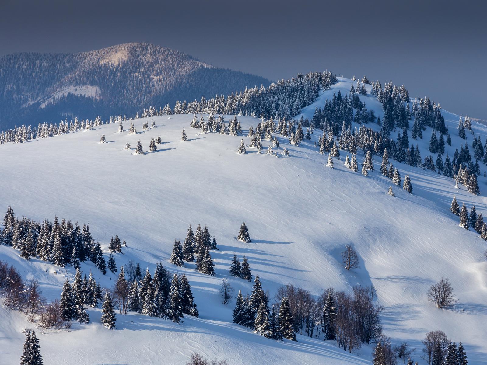 Wallpaper Beautiful view of snowy mountains with fir trees
