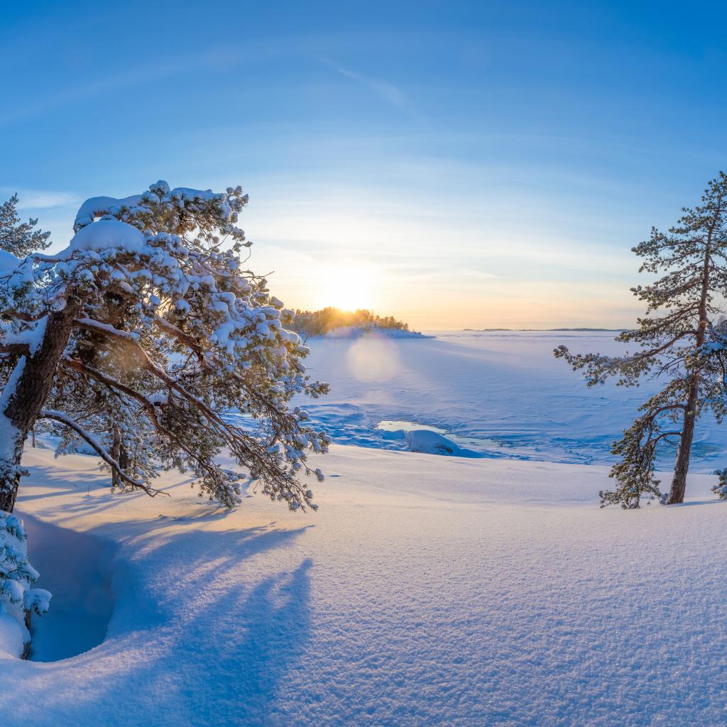Wallpaper Snow covered trees in the winter sunshine in the blue sky