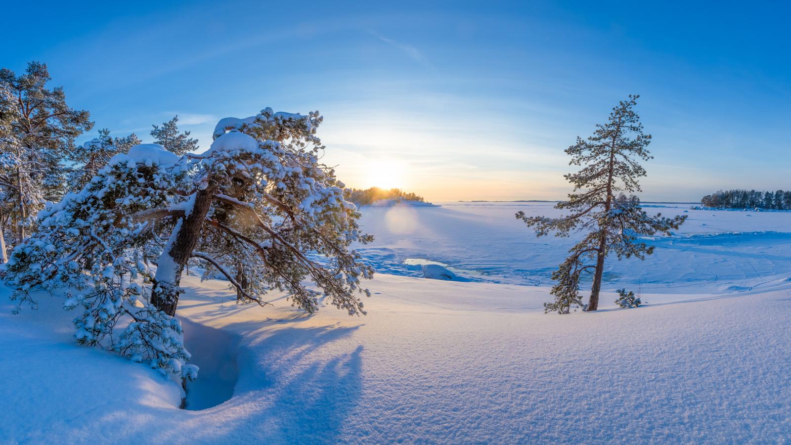Wallpaper Snow covered trees in the winter sunshine in the blue sky