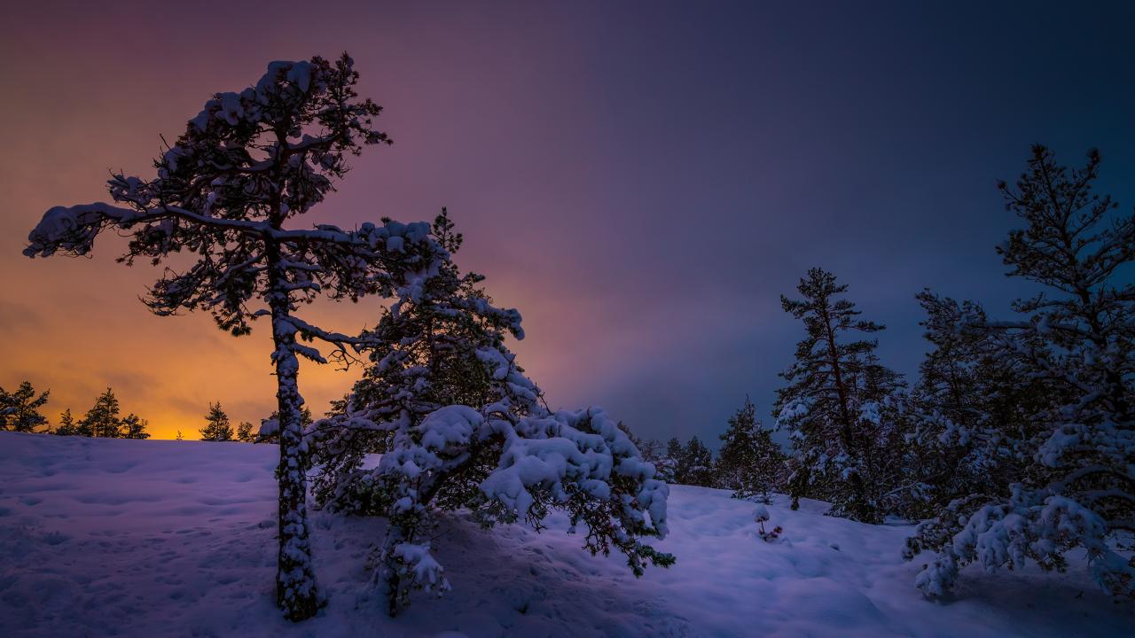» Wallpaper Trees covered in snow at sunset