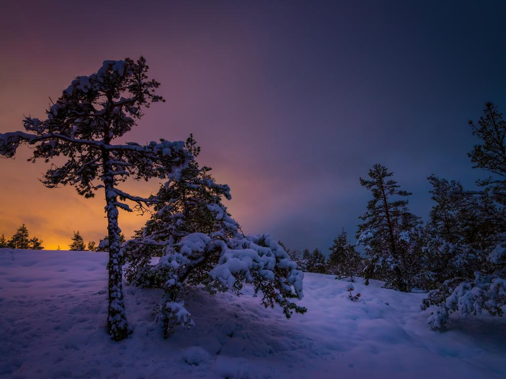 Wallpaper Sunset on the background of snow-covered trees in winter