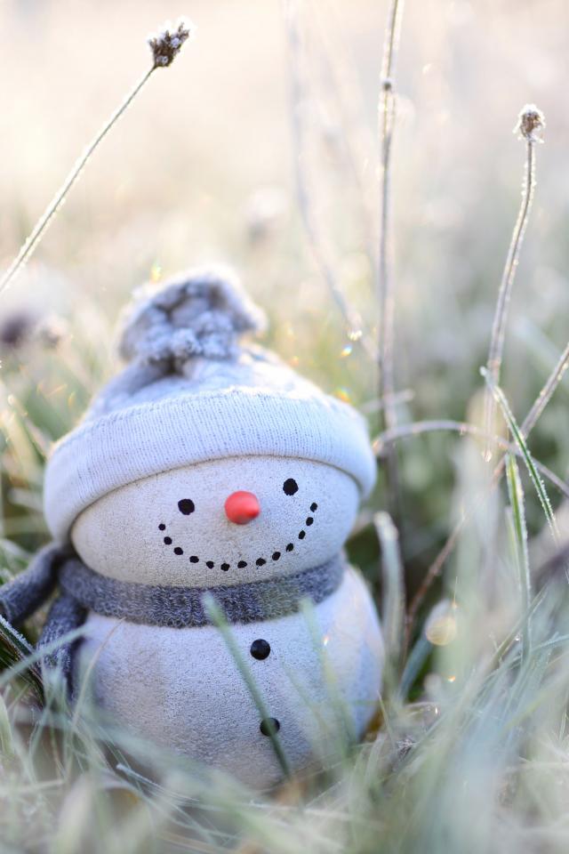 Wallpaper A snowman figurine stands on the frosty grass