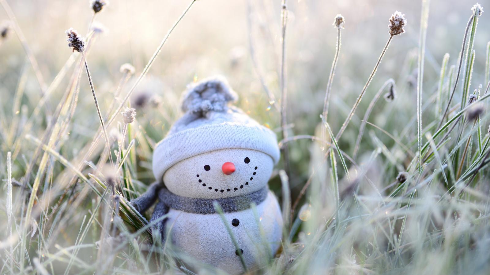 Wallpaper A snowman figurine stands on the frosty grass