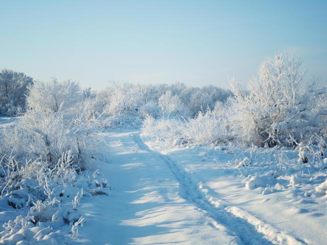 Wallpaper The trail leads to frosty trees in a snowy forest