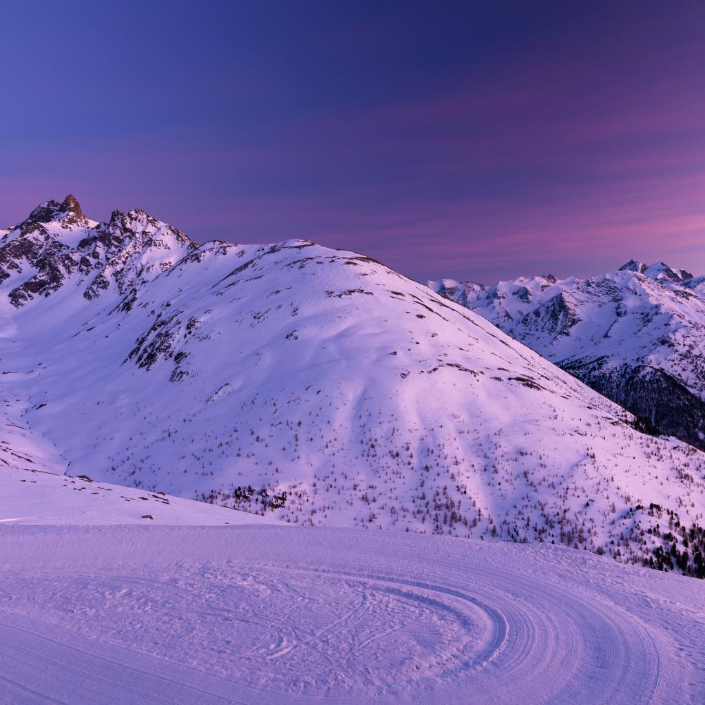 Wallpaper Snow capped mountains under a beautiful purple sky