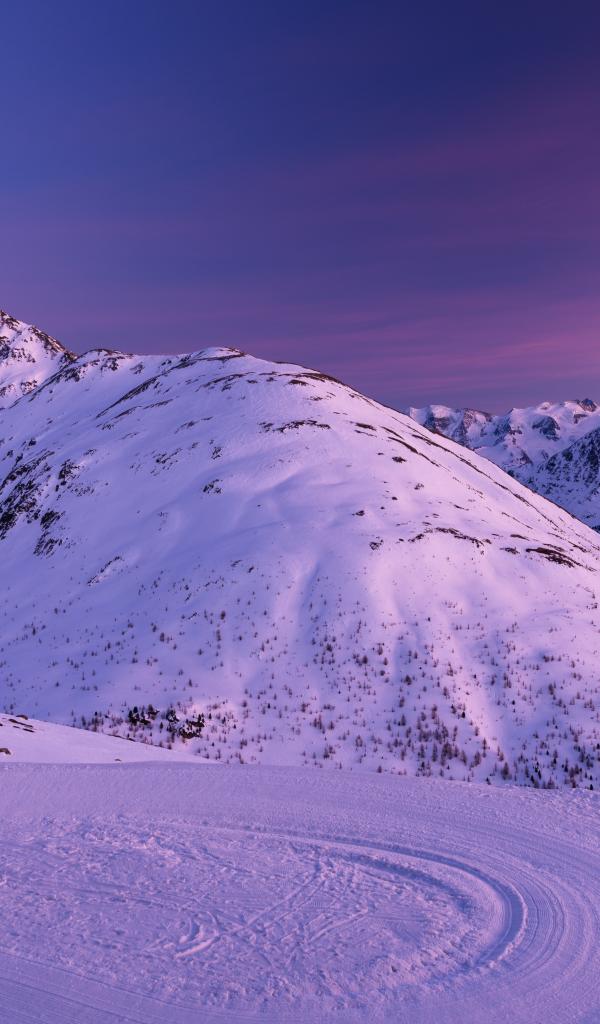 Wallpaper Snow capped mountains under a beautiful purple sky