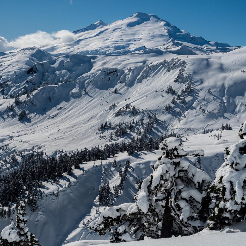 Wallpaper Snow-capped mountain slopes in the rays of the sun under the blue sky