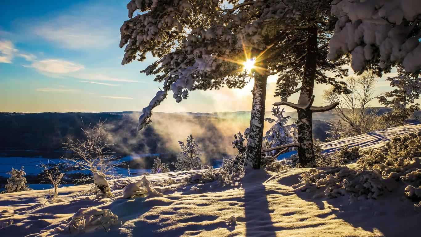Wallpaper The bright winter sun warms the snow-covered land