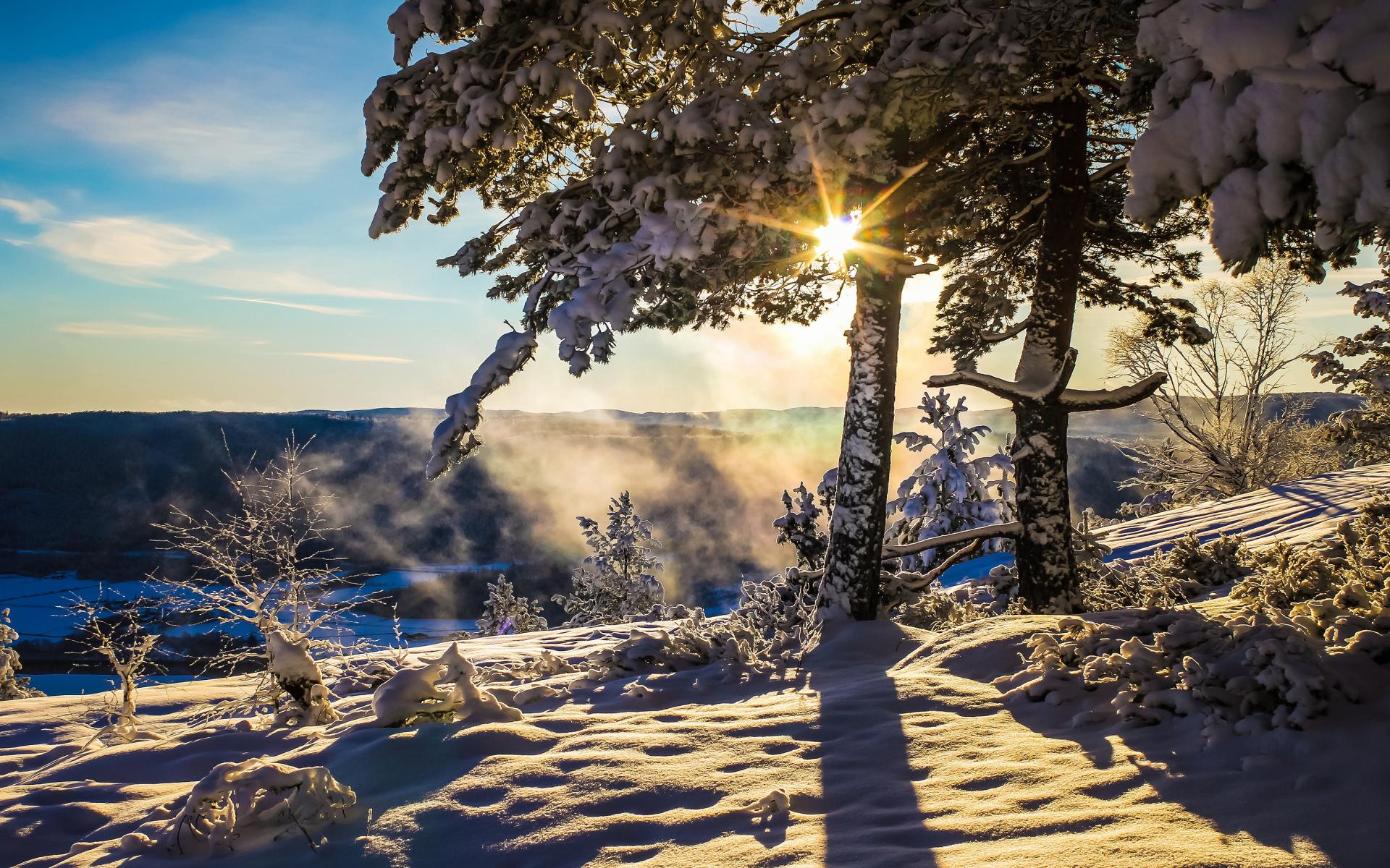 Wallpaper The bright winter sun warms the snow-covered land