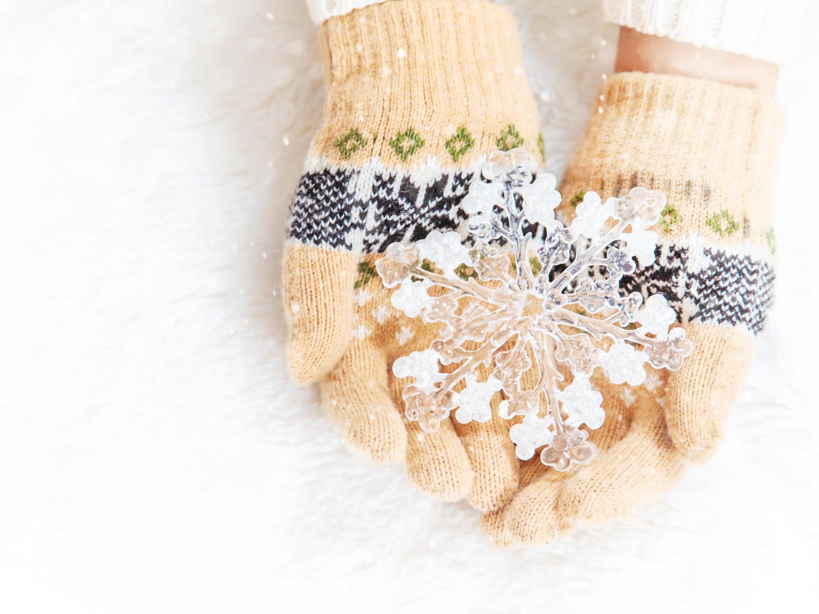 Wallpaper Ice snowflake on the palms