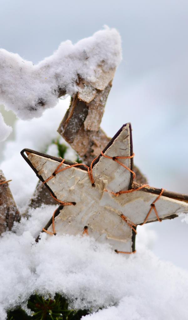 Wallpaper Wooden stars lie in the snow