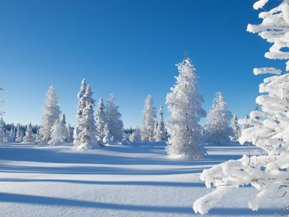 Wallpaper Beautiful snowy forest winter landscape under blue sky