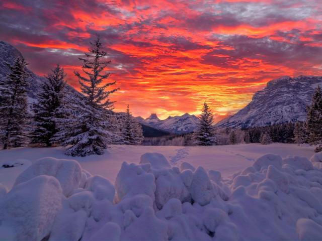 Wallpaper Beautiful orange sunset over snowy forest