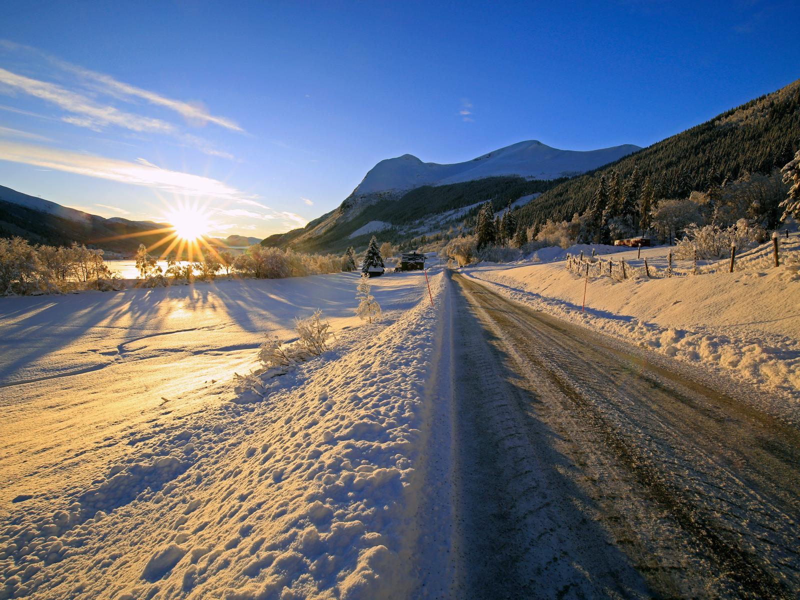 Wallpaper Slippery winter road in the rays of the bright sun