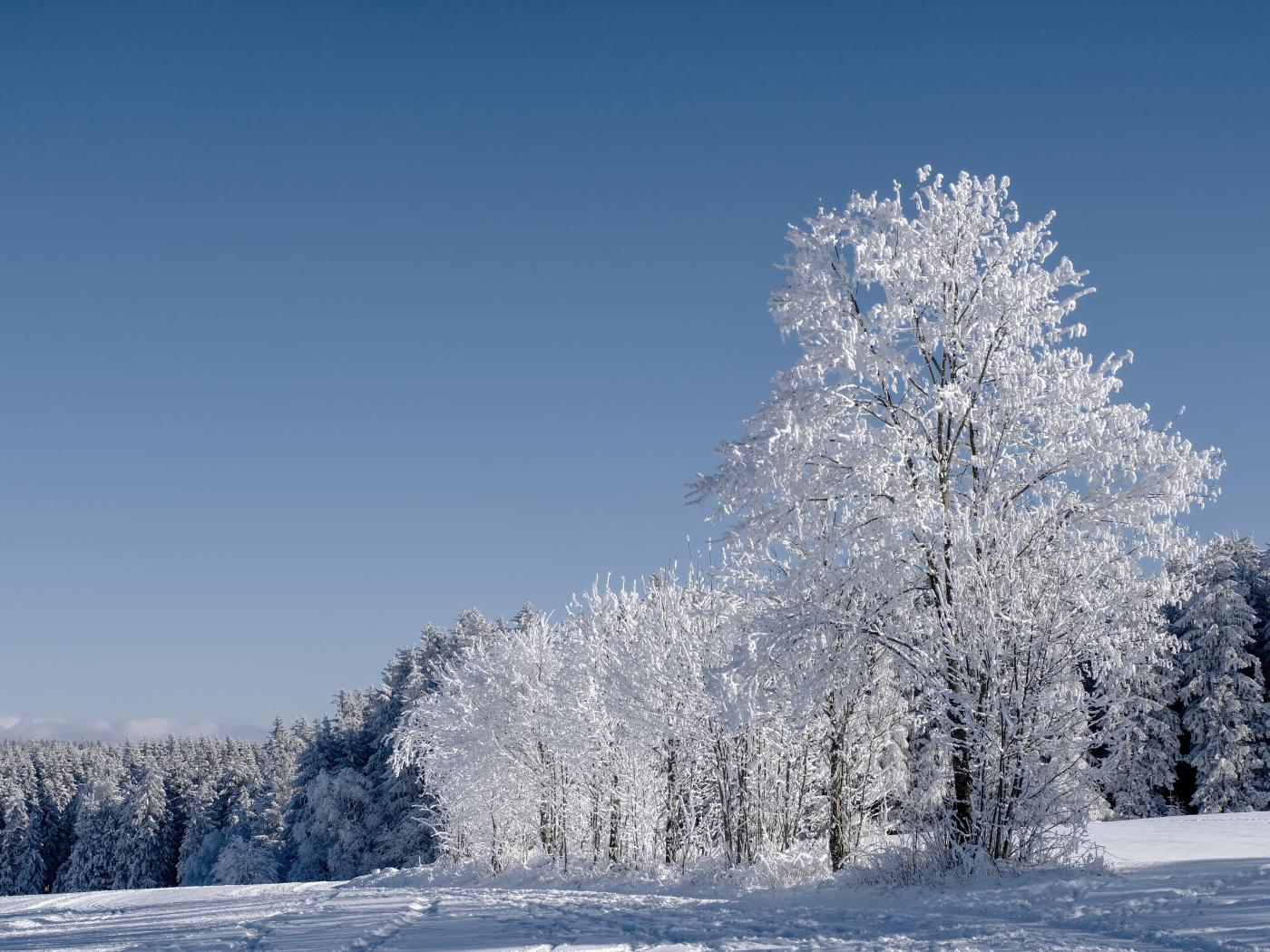 Wallpaper Beautiful white trees in hoarfrost under the blue sky
