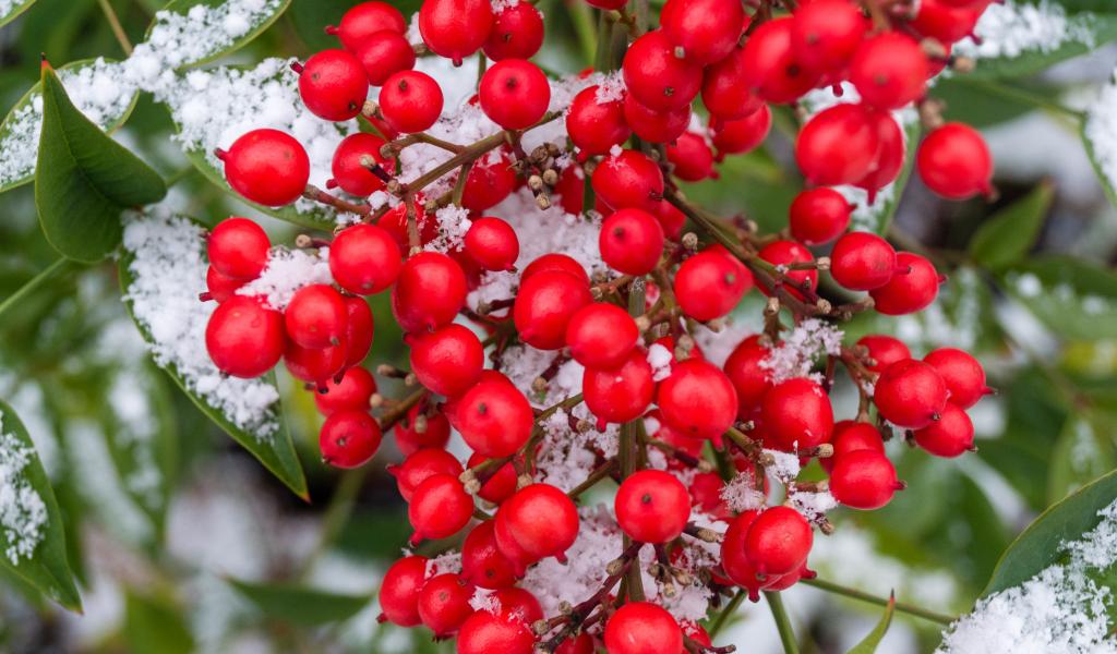 Wallpaper Red berries of mountain ash on a branch are covered with snow in winter