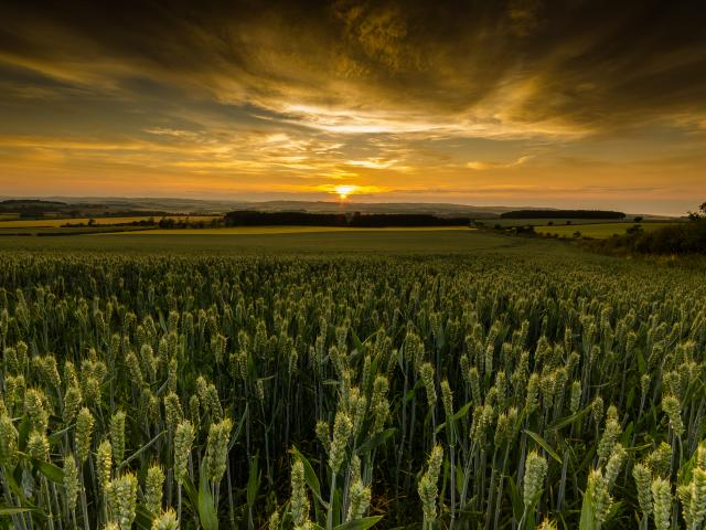 Wallpaper Sunset over the field of green wheat