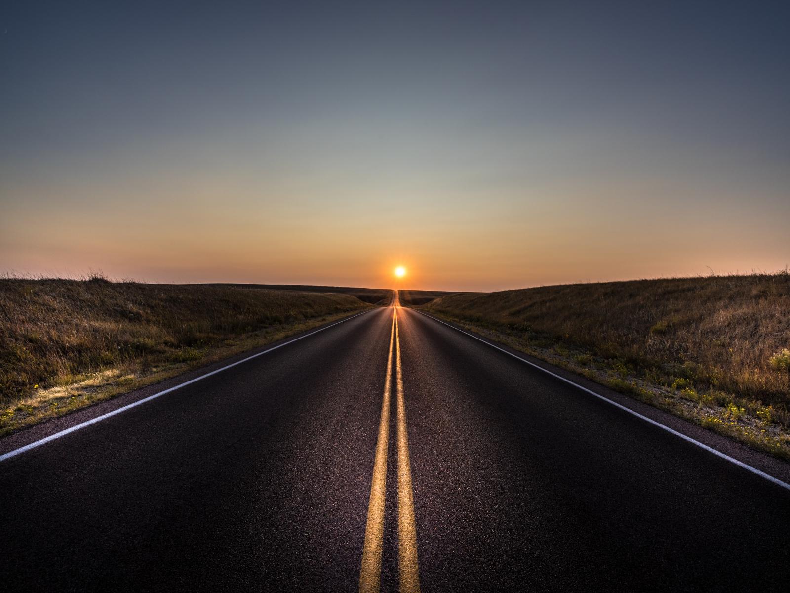 » Wallpaper Long road at sunset