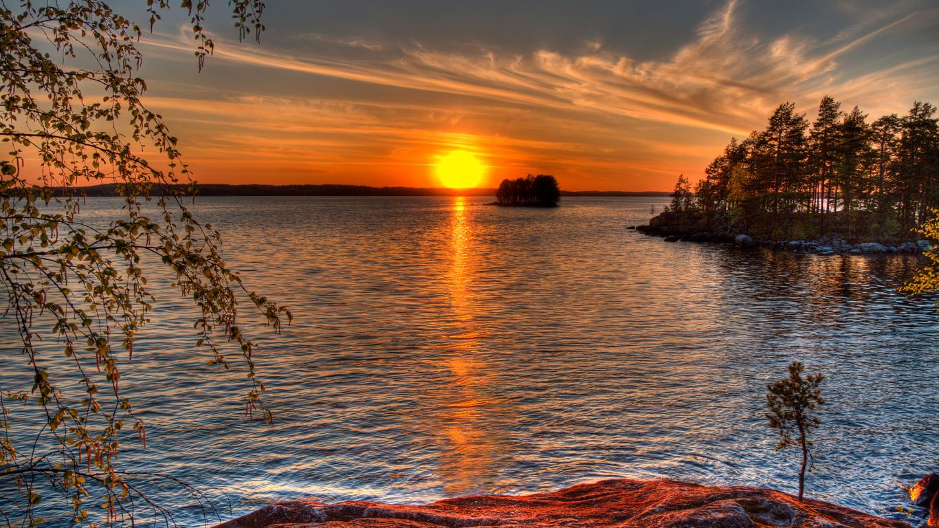 Wallpaper Sunset reflected in the river