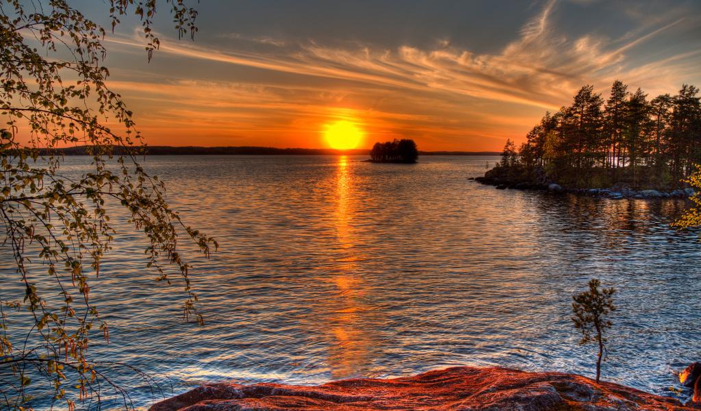 Wallpaper Sunset reflected in the river