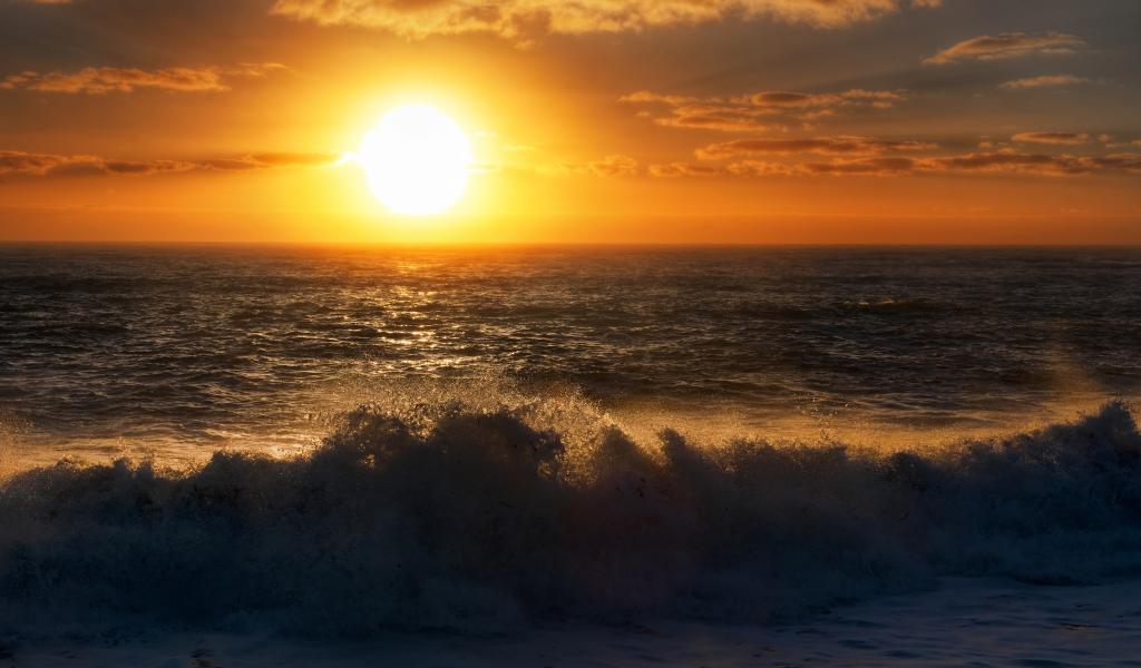 Wallpaper Beautiful sunset in the cloudy sky over the sea