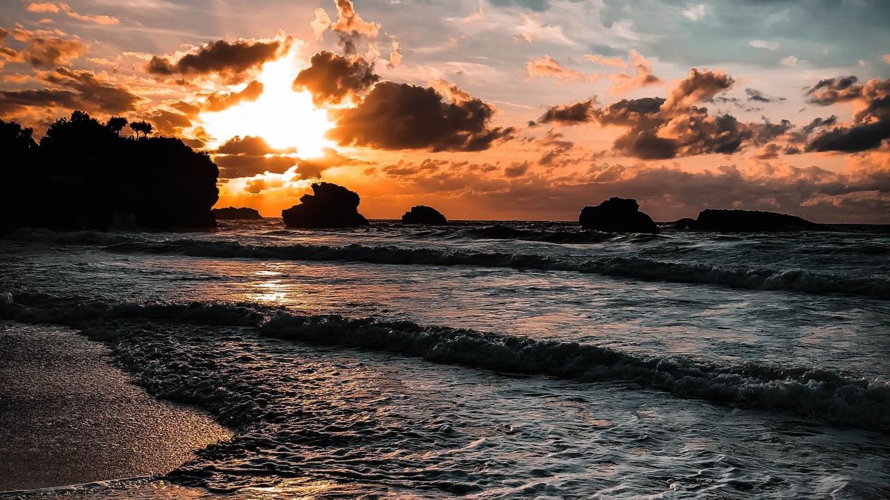 » Wallpaper Beautiful sunset in the cloudy sky over the sea
