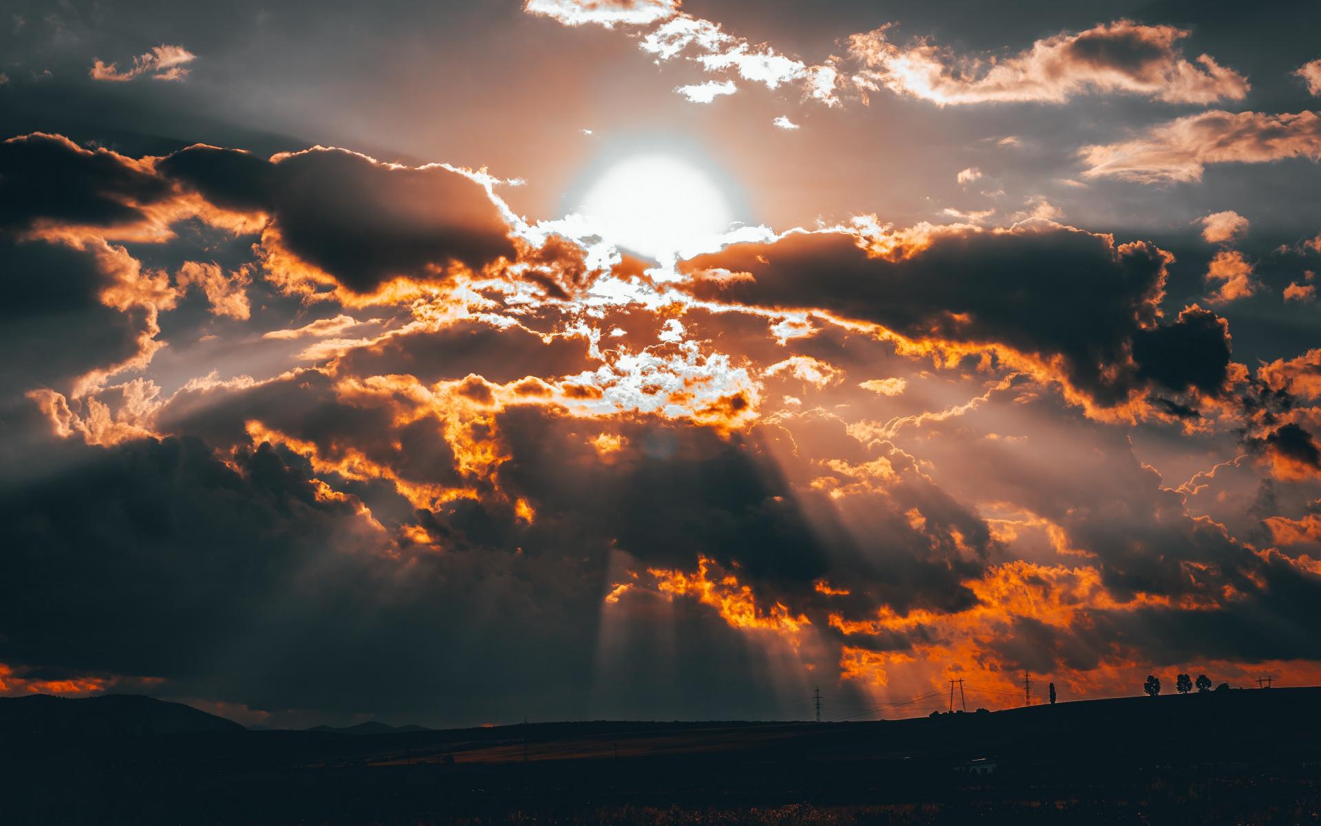 Wallpaper Bright sun in the clouds at sunset