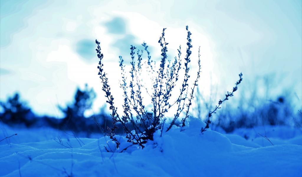 » Wallpaper Grass in the snowy woods at sunset