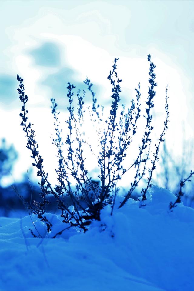 » Wallpaper Grass in the snowy woods at sunset