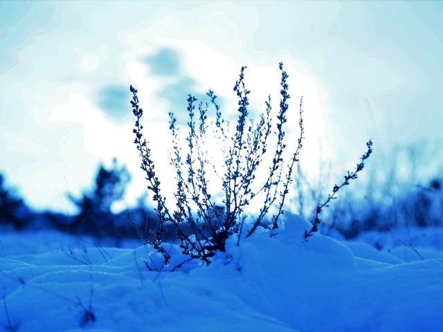 Wallpaper Snowy shore on a lake under a beautiful sky at sunset
