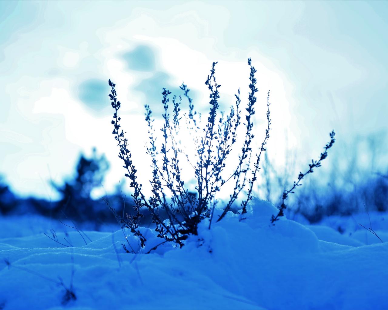 » Wallpaper Grass in the snowy woods at sunset