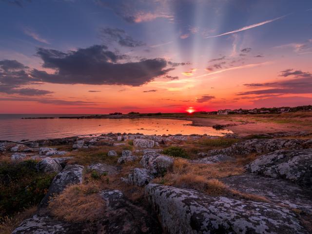 Wallpaper Rays of the sun at sunset in the sky above the sea