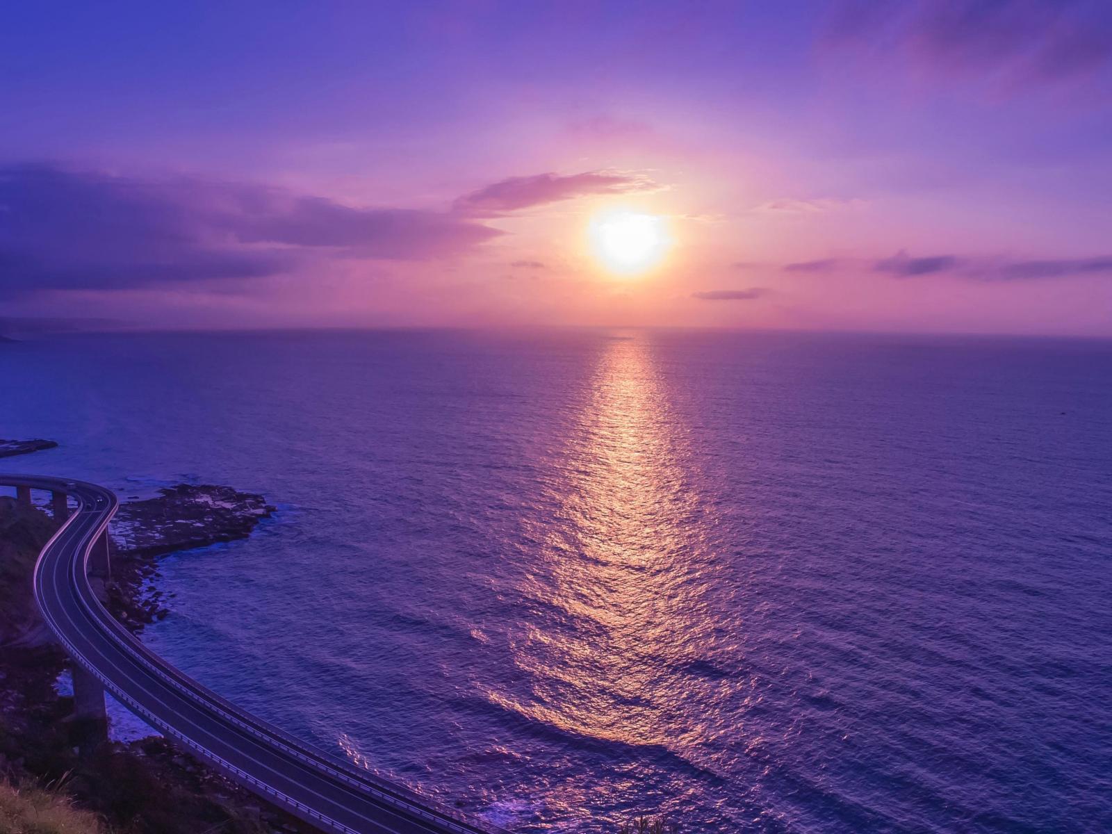 Wallpaper The road by the sea at sunset bright summer sun