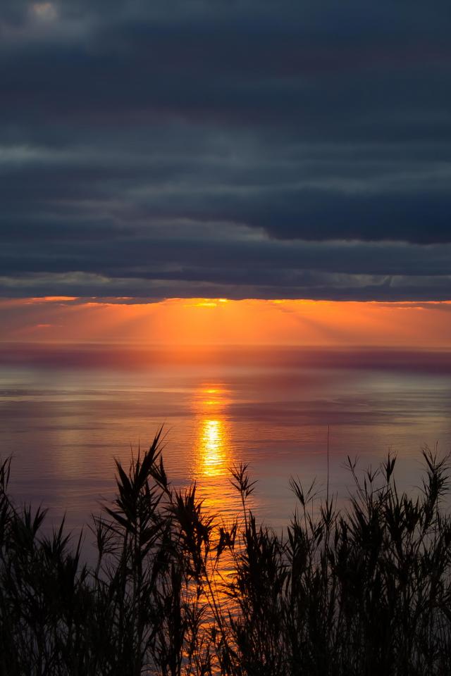 Wallpaper Beautiful sunset in the cloudy sky over the sea
