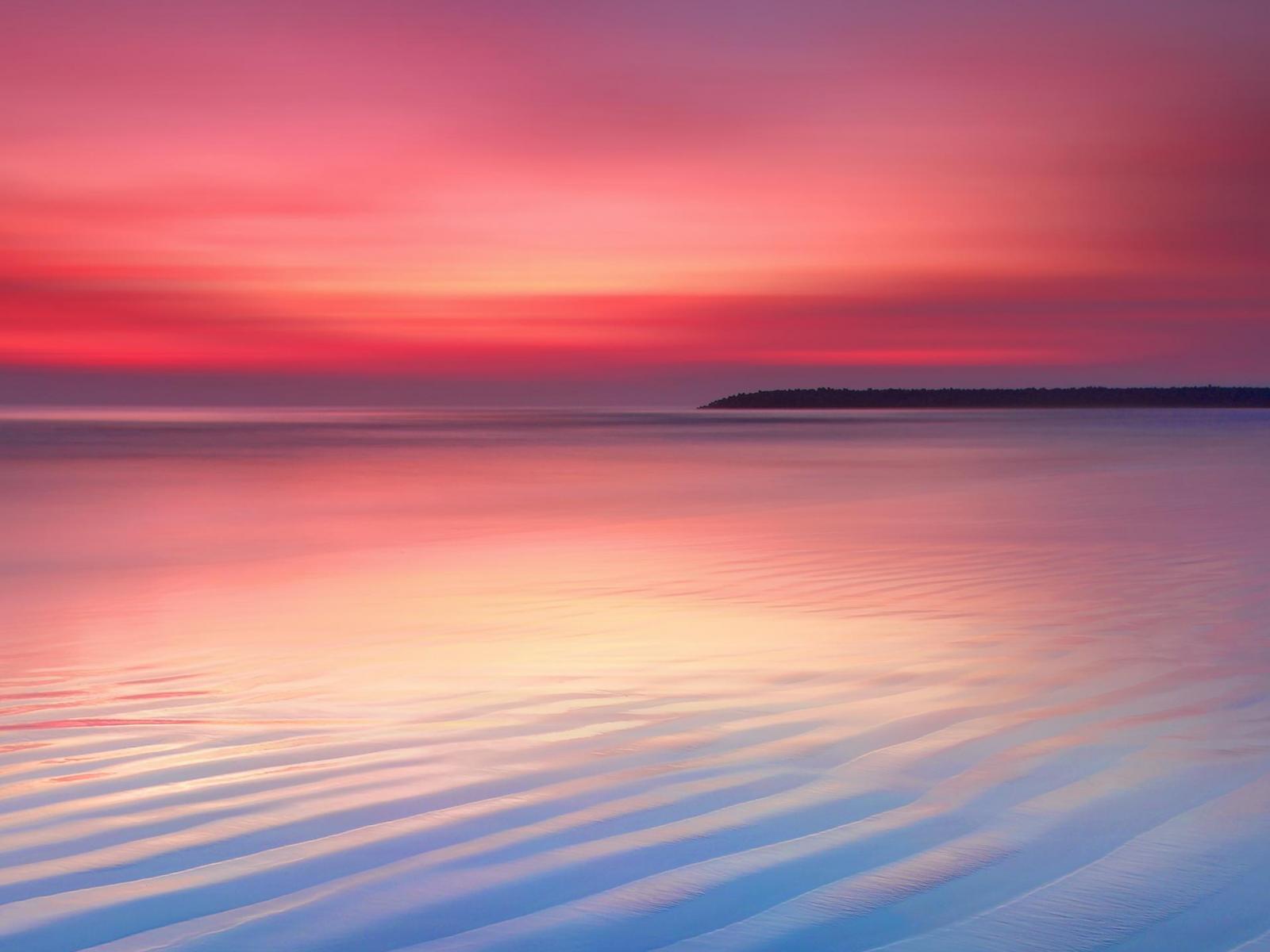 Wallpaper Wet white sand on the ocean at sunset