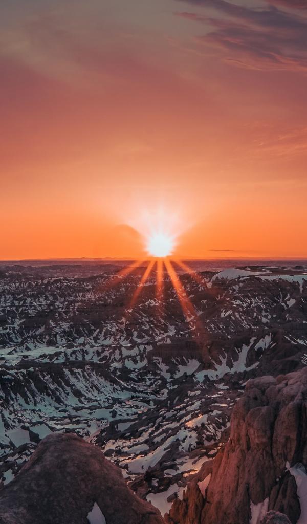 Wallpaper Bright red sunset over the mountains