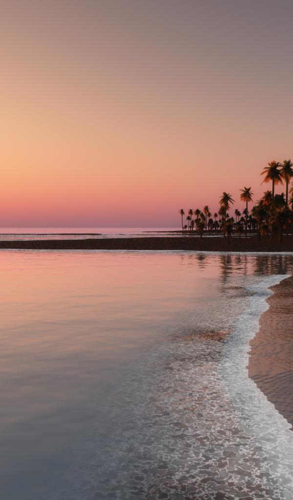 Wallpaper Sunset on the horizon by the calm sea in the tropics