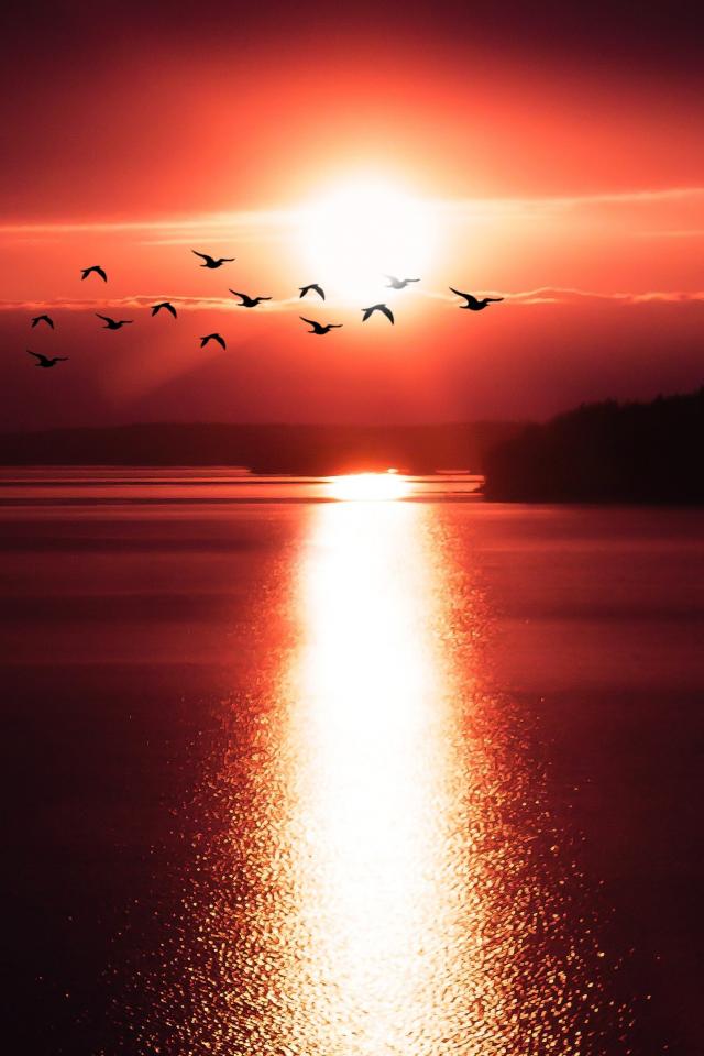 Wallpaper The sun at sunset leaves a track on the water