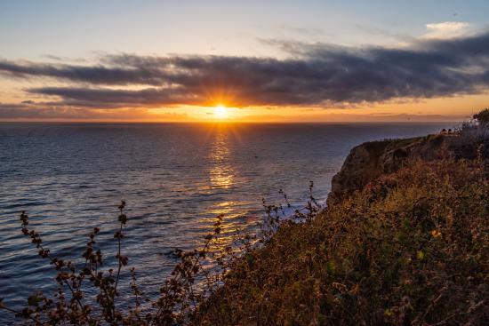 Wallpaper Sunset view in dark clouds in the sky above the sea