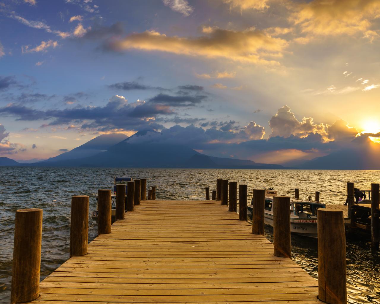 Wallpaper Wooden bridge in the lake at sunset