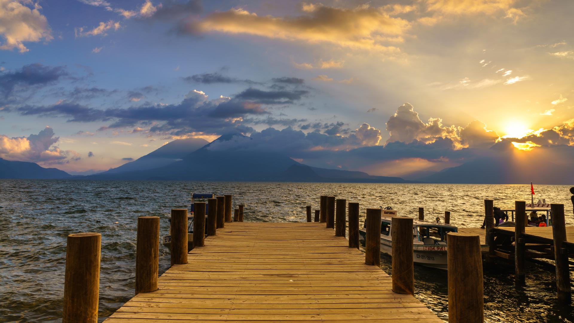 Wallpaper Wooden bridge in the lake at sunset