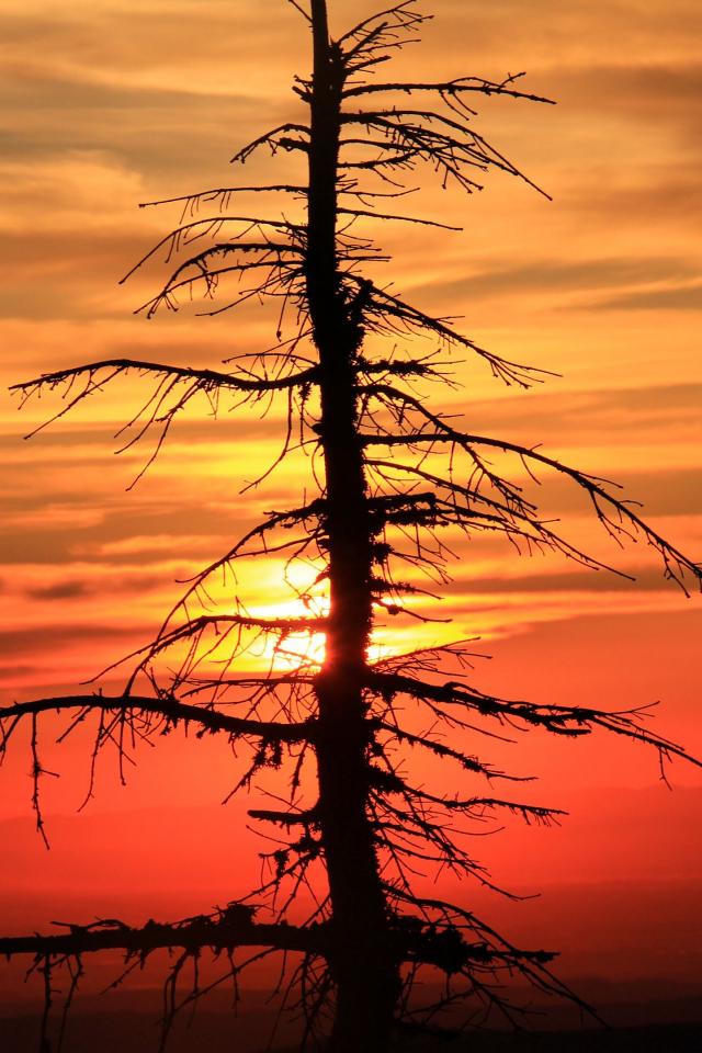 Wallpaper Dry spruce tree at sunset