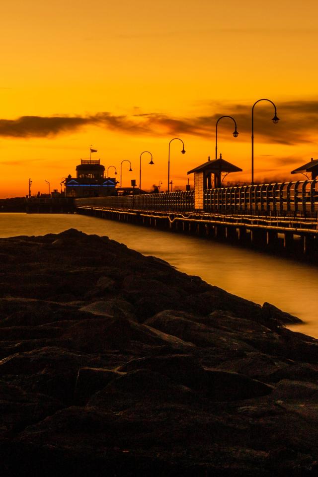 Wallpaper Long bridge on the sea at sunset