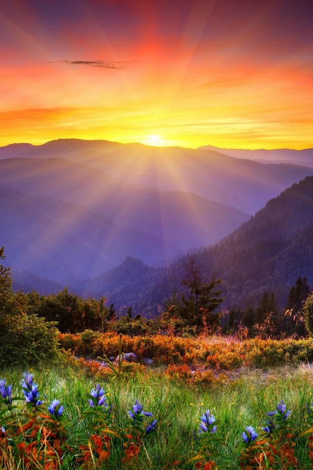 Wallpaper Bright sun covers mountain peaks and beautiful nature