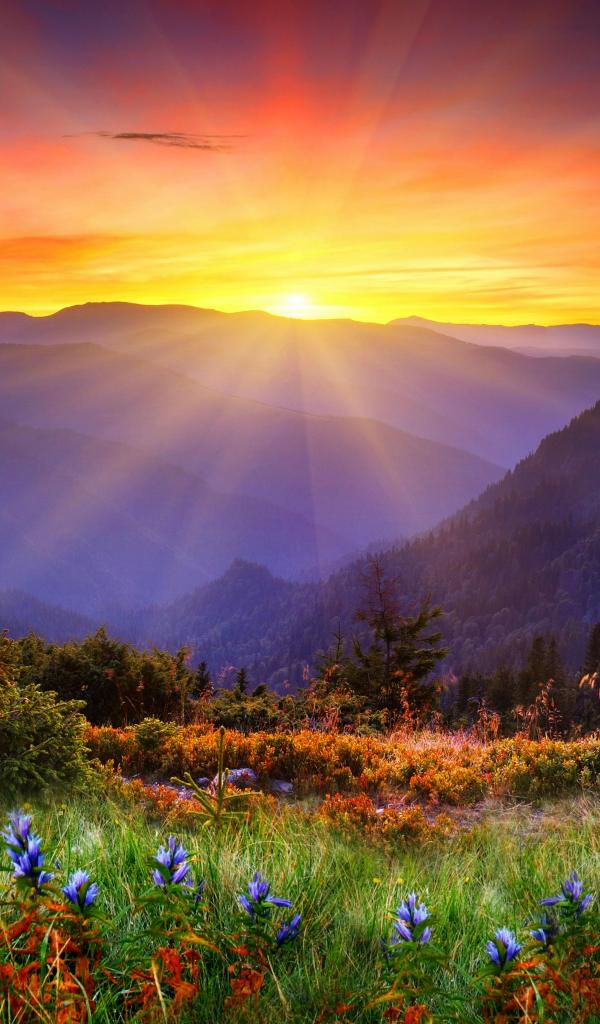 Wallpaper Bright sun covers mountain peaks and beautiful nature