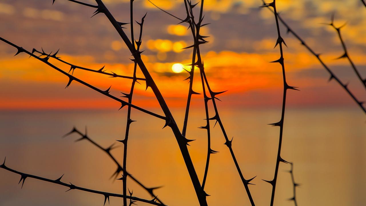 Wallpaper The bare branches of a tree against the orange clouds sunset