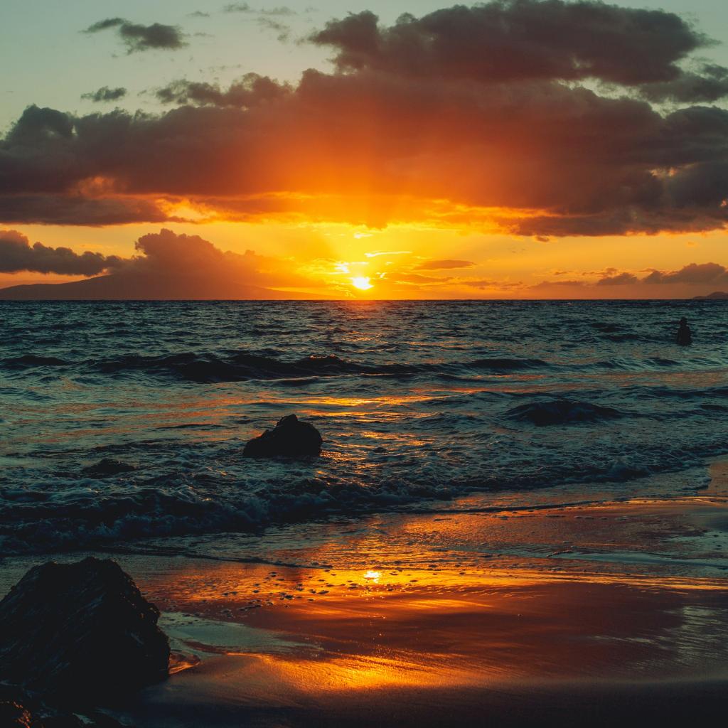 Wallpaper Wet sand by the ocean at sunset