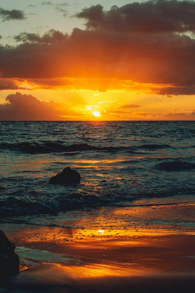 Wallpaper Wet sand by the ocean at sunset