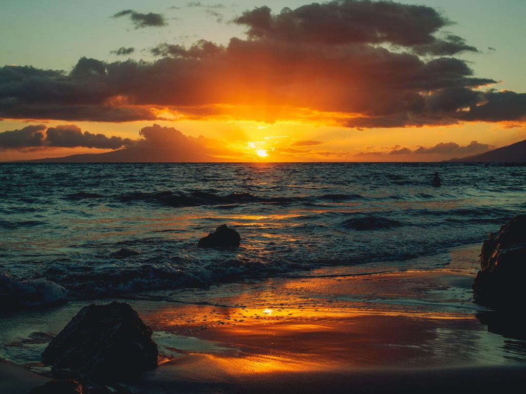Wallpaper Wet sand by the ocean at sunset